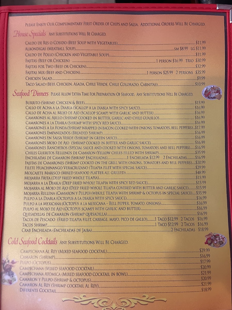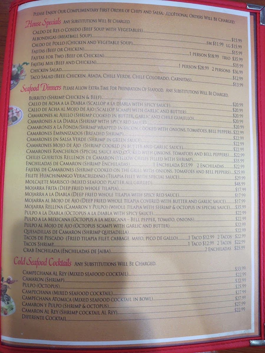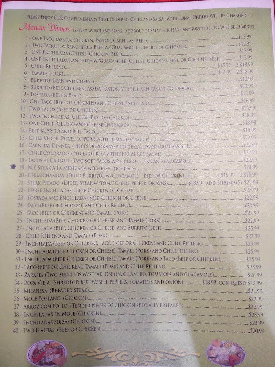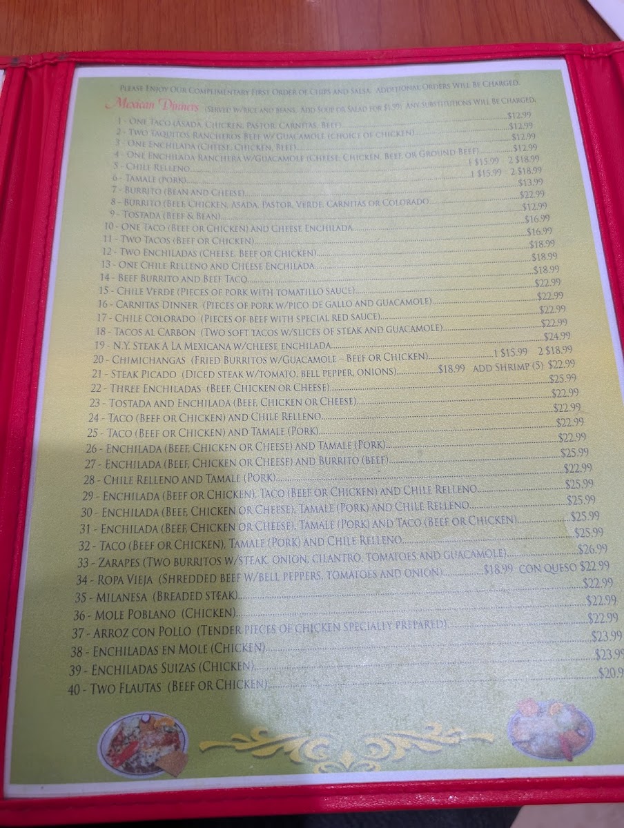 La Fonda Mexican Food Menu